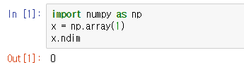 대로 0 차원이 나왔습니다. 한개의 값만 존재하는 scalar는 0차원입니다.